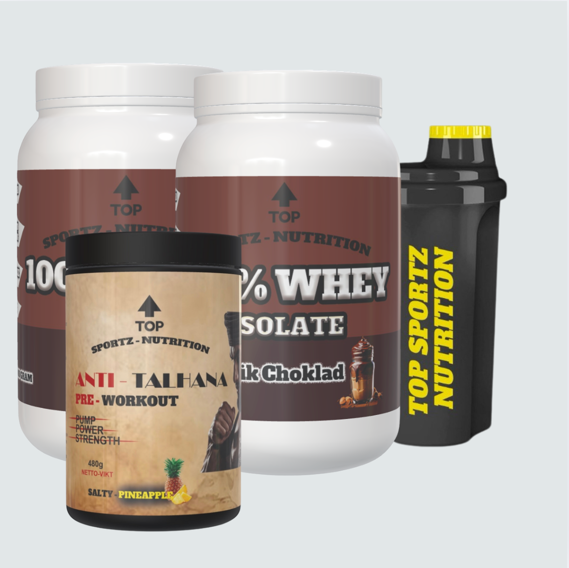 Includes 2x Whey Isolate, Anti-Talhana Pre-Workout, and a TSN shaker